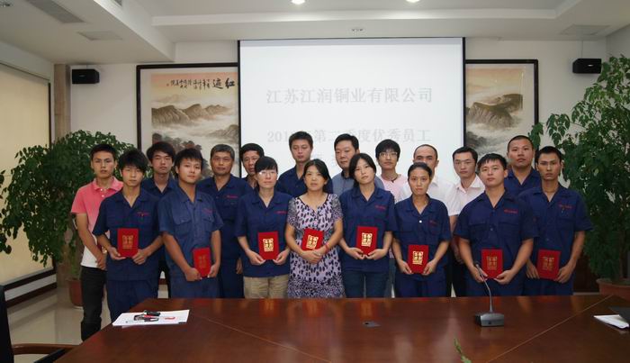 8月19日,江潤銅業2012年第二季度優秀員工表彰大會在一樓會議室召開,總經理駱偉棟主持會議,二季度共評選出17名優秀員工。