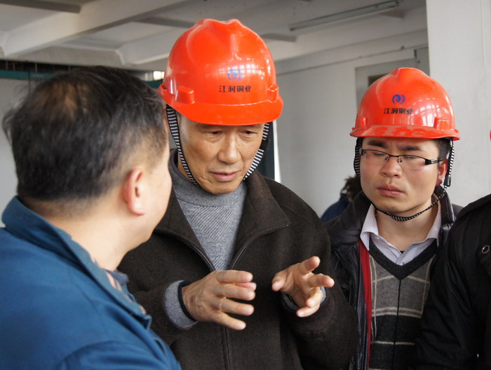 2011年2月23日,上海電纜研究所、中國工程院黃崇祺院士和上海電纜研究所總工程師毛慶傳一行來江潤銅業(yè)考察,總經(jīng)理駱偉棟先生熱情接待。專家們參觀了公司SCR7000連鑄連軋生產(chǎn)車間,深入了解該生產(chǎn)線的裝備水平、生產(chǎn)規(guī)模和運行情況。